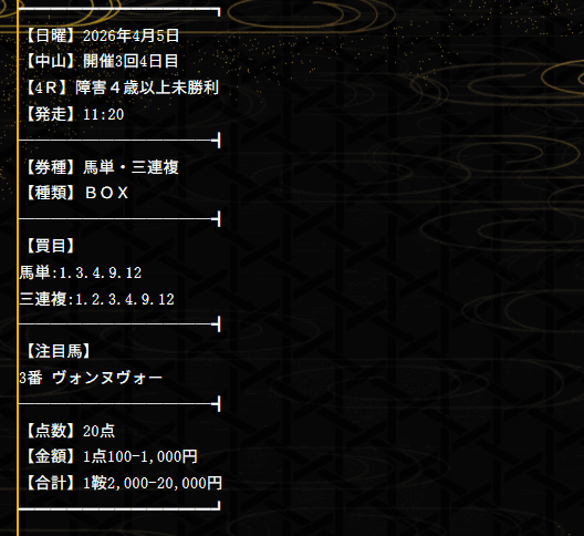 - 的中 4月5日 阪神9R