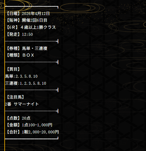 - 的中 4月12日 阪神6R