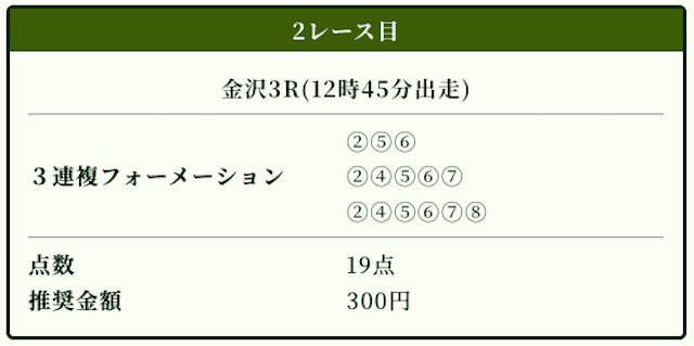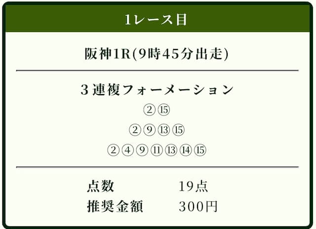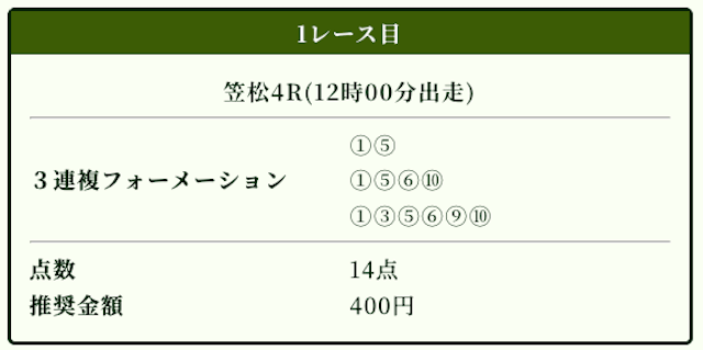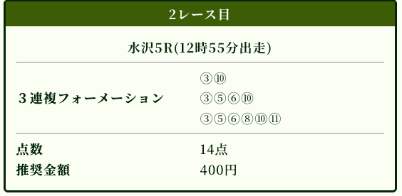 そこまで説明するような買い目ではなく、ごく一般的な予想となっています。