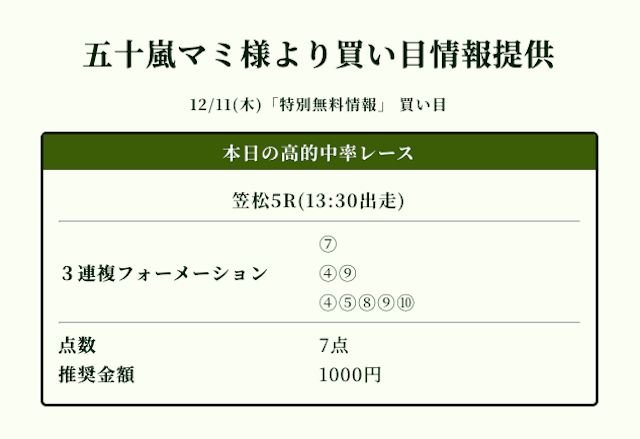 続いては、競馬ナンバー1の無料予想の中でも特に素晴らしい予想だと感じたレースをご紹介します!