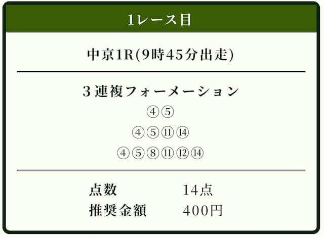 点数がやや多めなので、人気決着であればトリガミとなるでしょう。