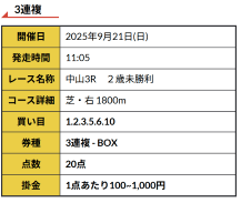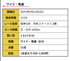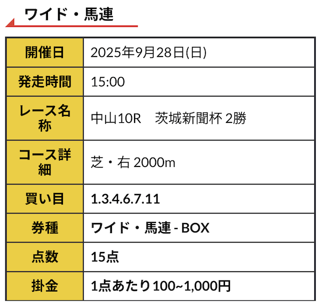 - 券種:ワイド・馬連・三連複