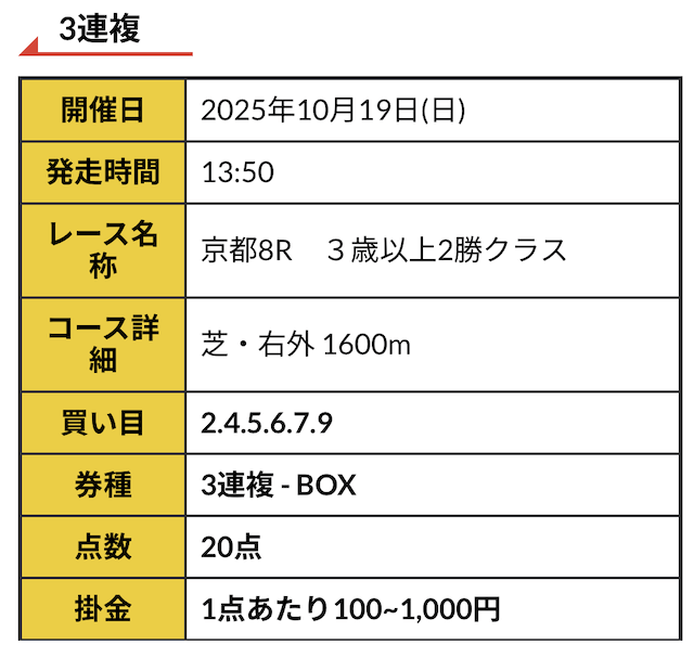 - 提供:2レース分/日