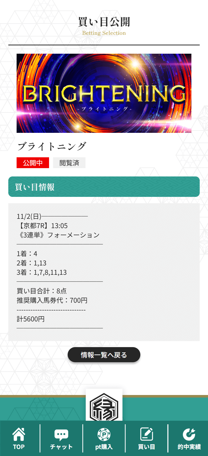 競馬ほぼ初心者で、券種もよく分かってなかったけど、ワイドと3連複に絞ってくれてるのがありがたい。点数が少ない時もあってとりあえず真似しやすいのが良かった。