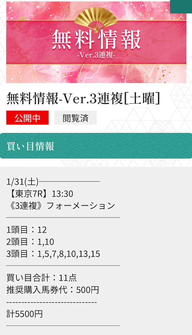 これは有料予想の購入に使えるので、特典を利用して有効活用してみてください。
