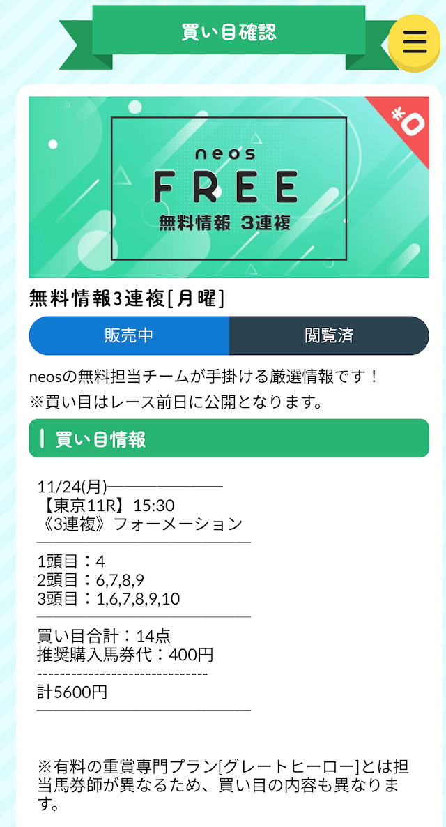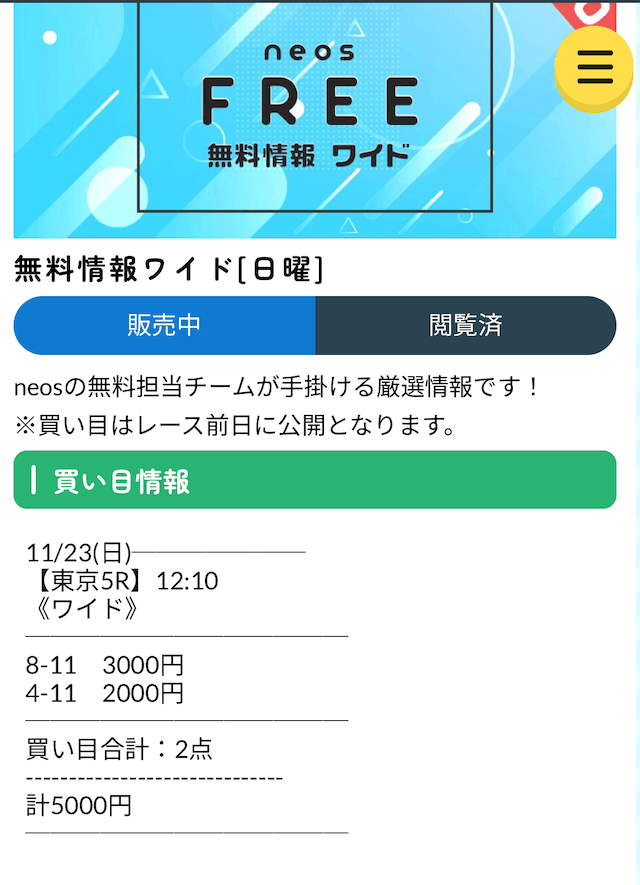 ネオスの無料予想における詳細