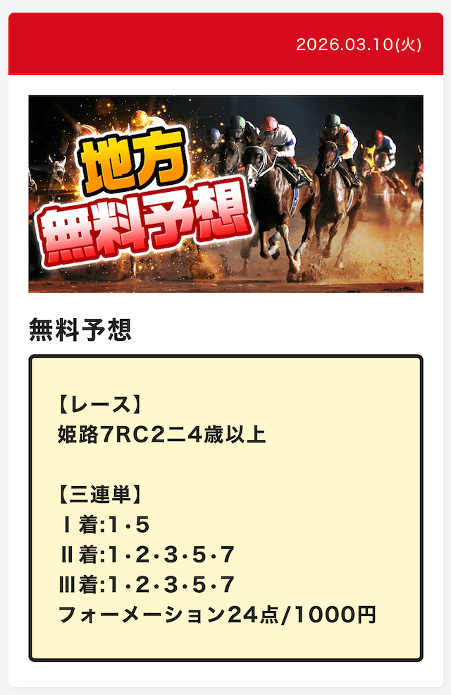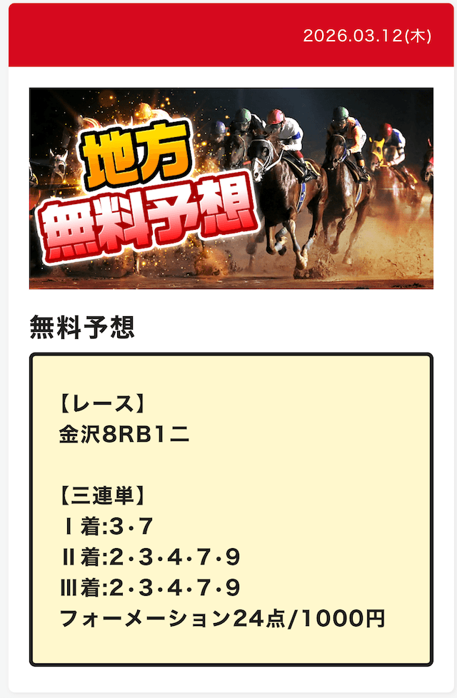 | 予想の公開場所 | スポニチ競馬WEB |