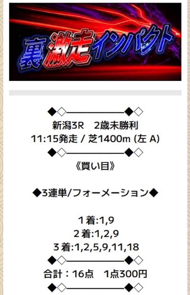 さらに、有料予想は「裏激走インパクト」に2回参加して、利益は160万円超える実力を見せつけてくれました。