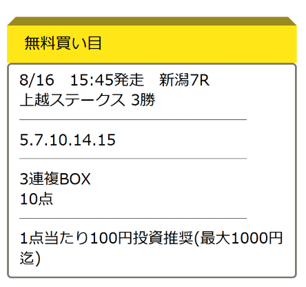 馬単と3連複で無料予想を出してくれるってのがまず新鮮でした。