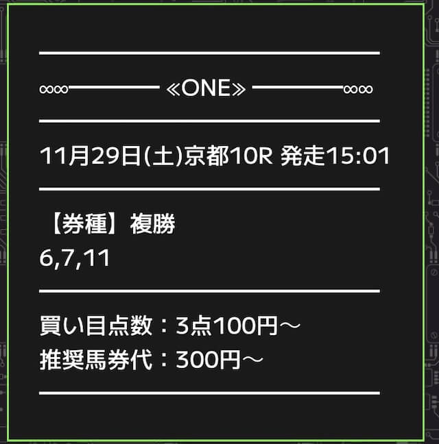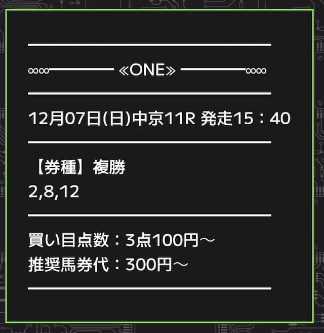 続いては、ONEの無料予想の中でも特に素晴らしい予想だと感じたレースをご紹介します!