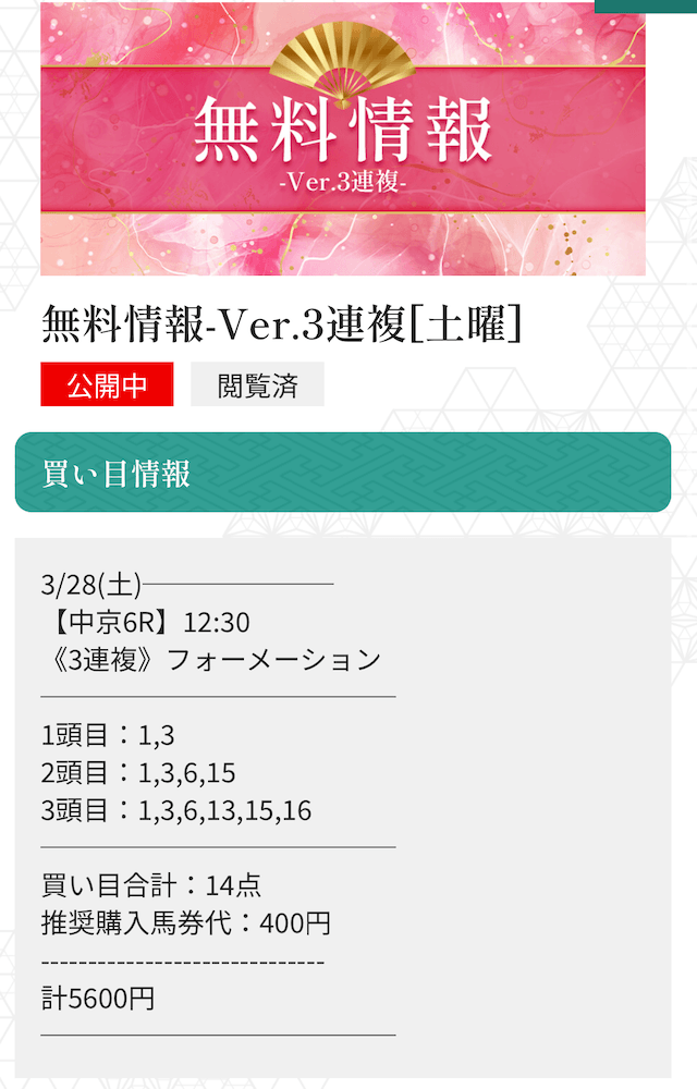 - 不的中 3月28日 中京6R