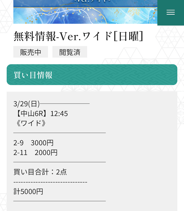 | 競馬予想配信 | なし |