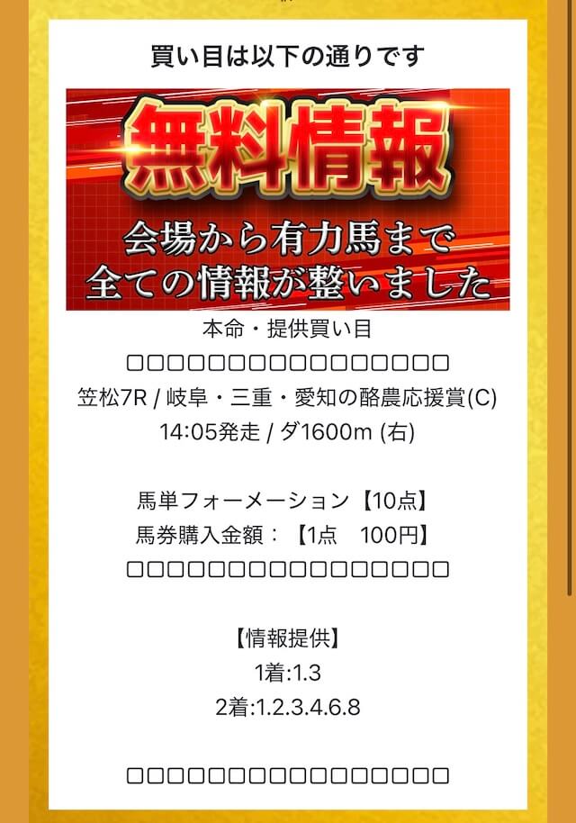 ただ当ててないというわけではないので、彼の本命・対抗馬くらいは検討し、他予想元と照らし合わせてチェックするくらいの使い方であれば◎。