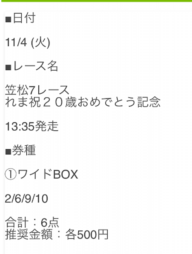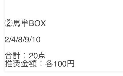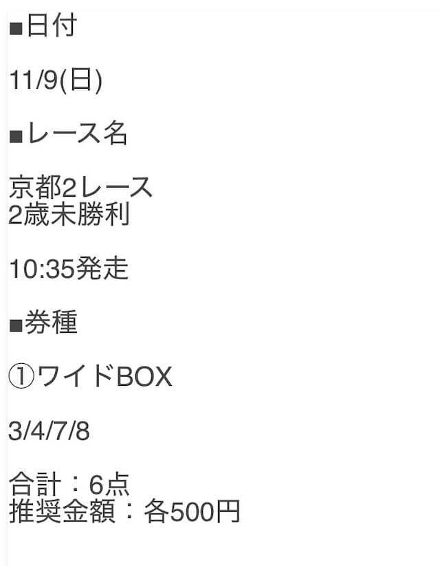 | 戦績 | 86戦74勝12敗 | 的中率 | 87.2% | 回収率 | 221.9% |