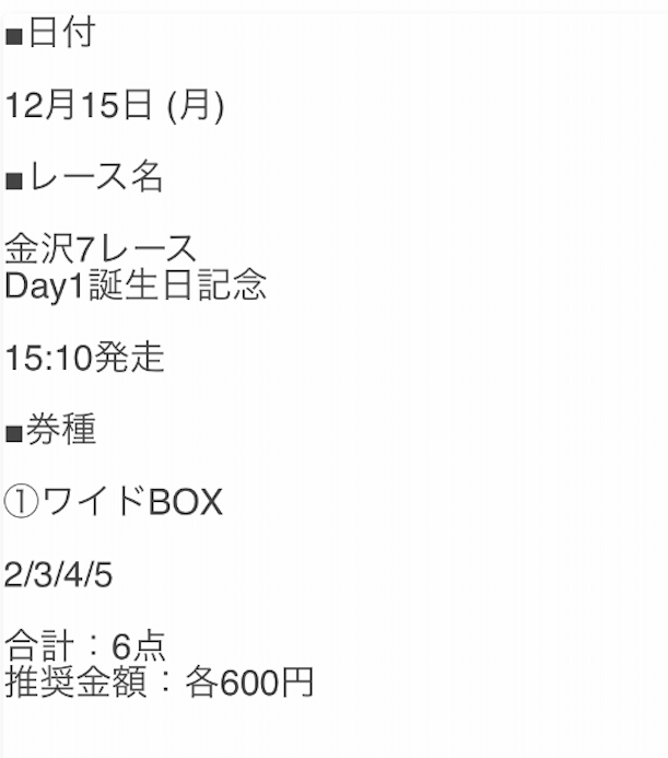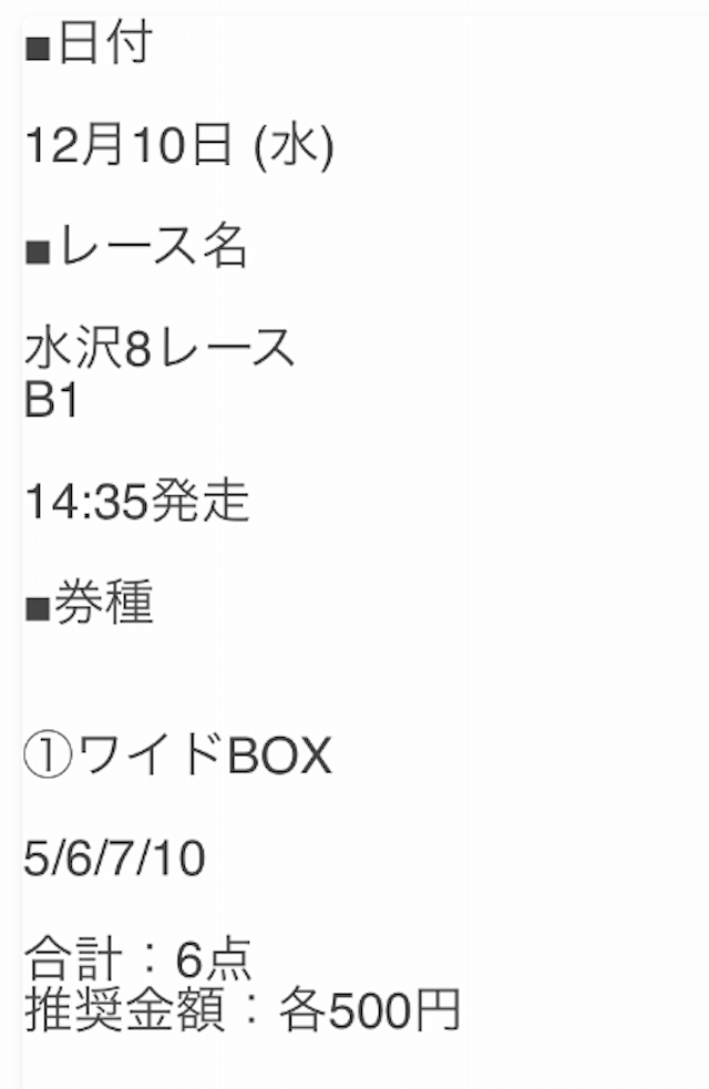 - 不的中 12月10日 水沢8R