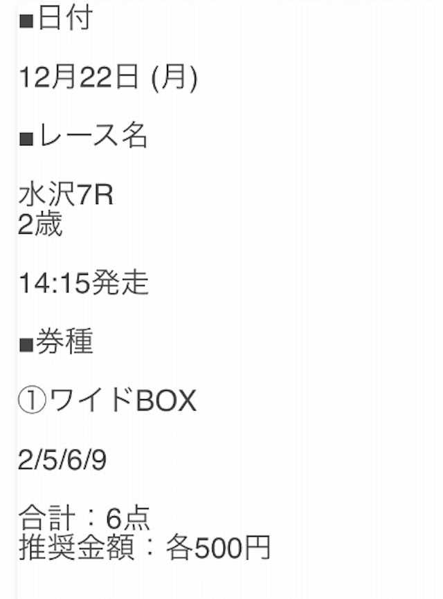 | 戦績 | 103戦88勝15敗 | 的中率 | 86.4% | 回収率 | 218.1% |