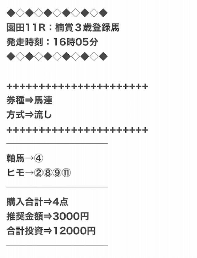 | 園田競馬場 | 12/15 | 80% | 285,900円 | 180,000円 | 105,900円 | 158.8% |