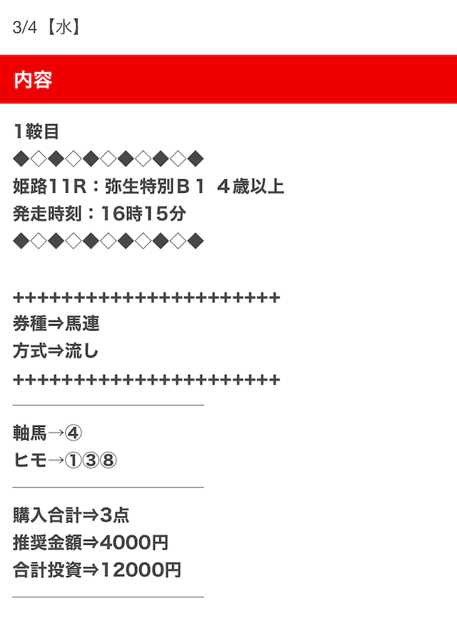 - 不的中 3月4日 姫路11R