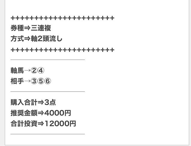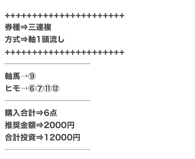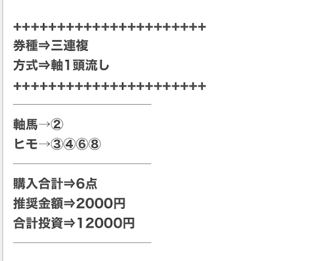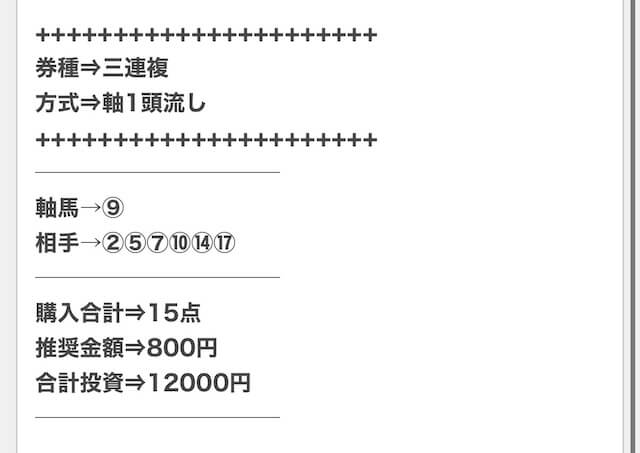 | 戦績 | 138戦120勝18敗 | 的中率 | 87% | 回収率 | 258.1% |