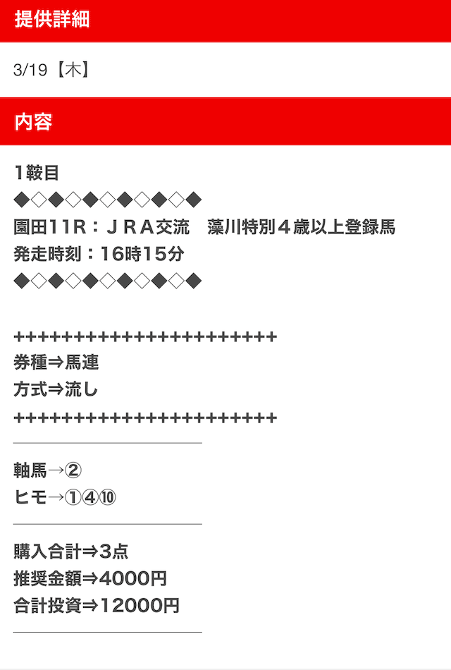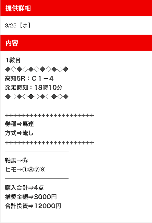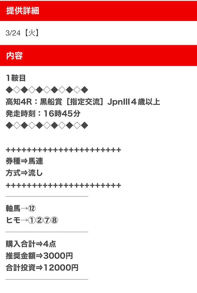 - 不的中 3月24日 高知4R