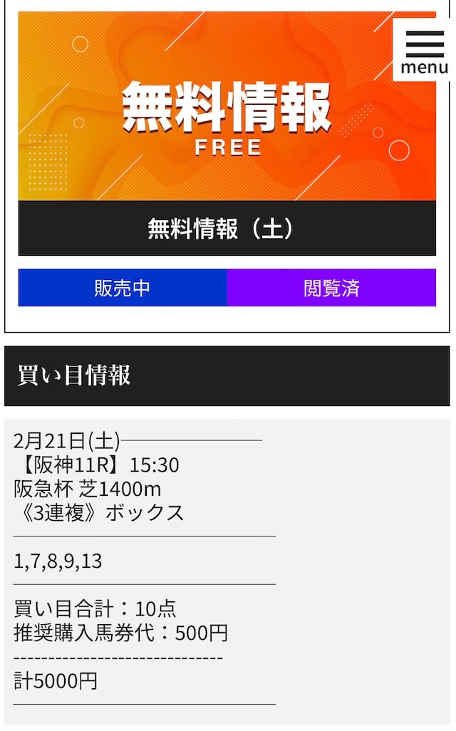 | 戦績 | 24戦19勝5敗 | 的中率 | 79.2% | 回収率 | 400% |
