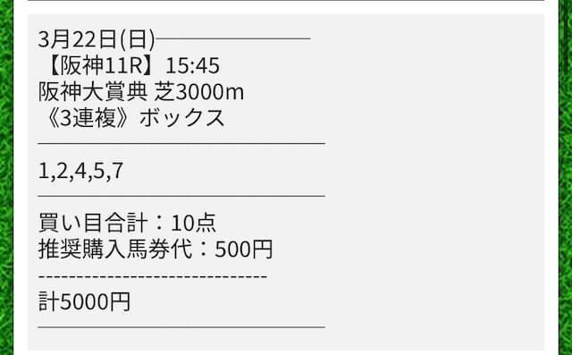 | 阪神競馬場 | 6/7 | 85.7% | 72,130円 | 34,800円 | 37,330円 | 207.3% |