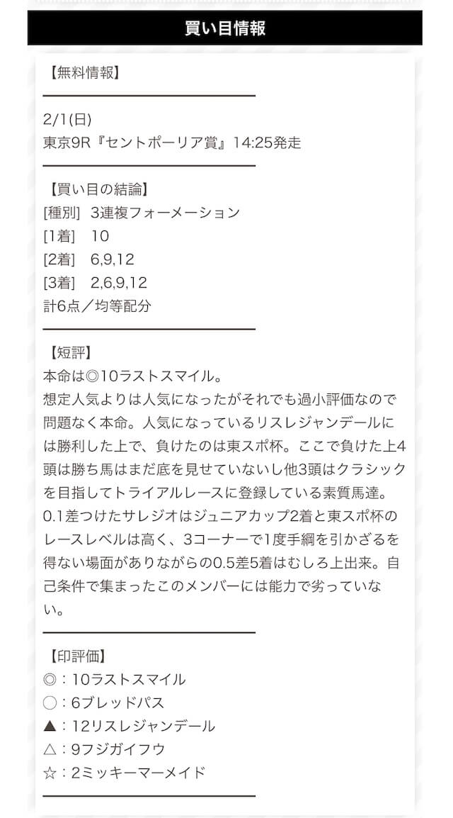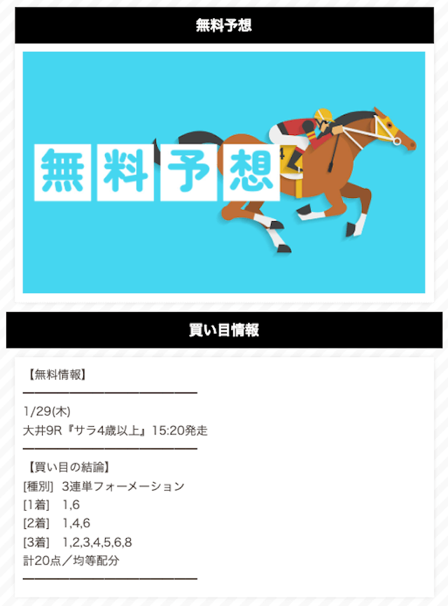 | 戦績 | 154戦119勝35敗 | 的中率 | 79.2% | 回収率 | 270.6% |