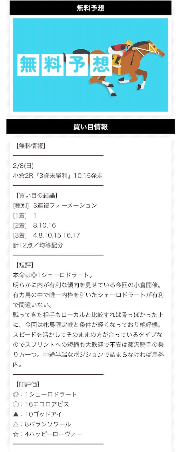 - 的中 2月8日 小倉2R