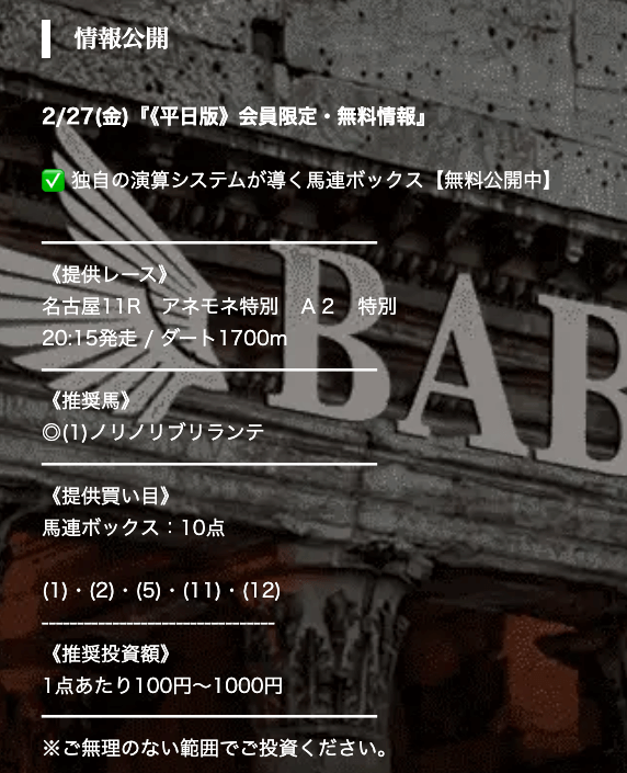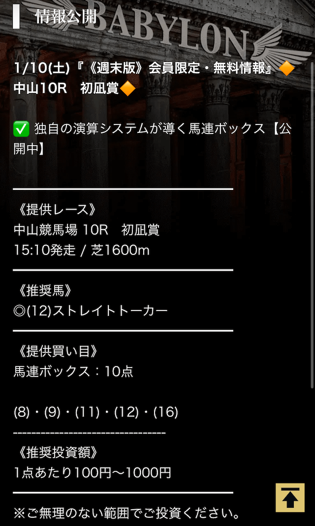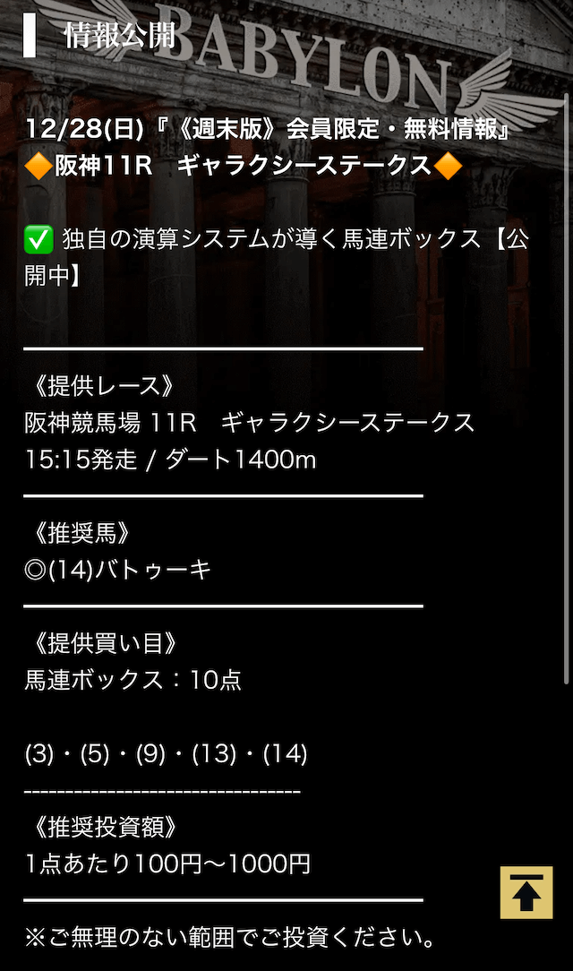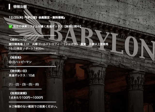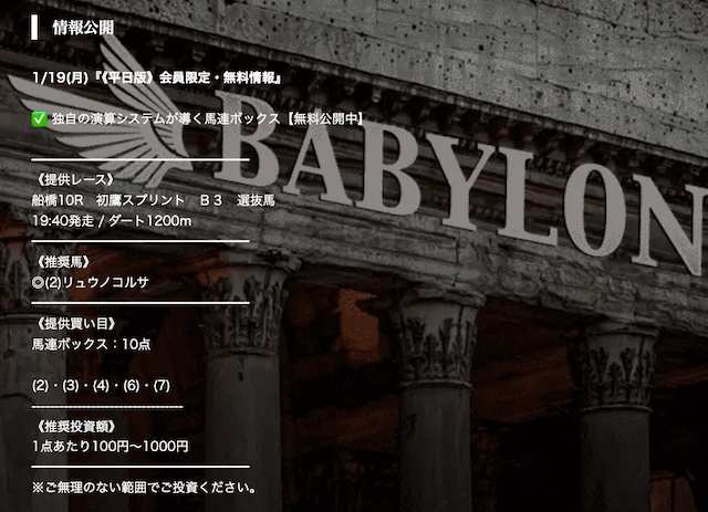 【バビロン】競馬予想サイトの無料予想を徹底検証