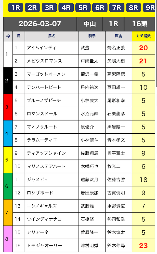 - 的中 3月7日 中山1R