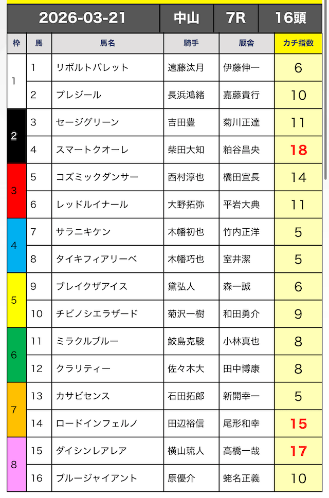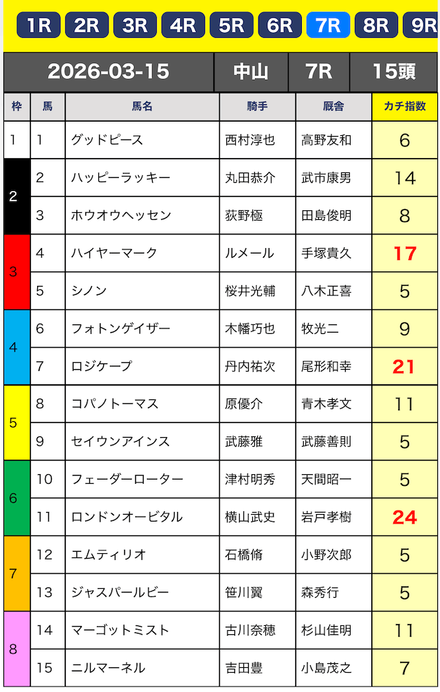 - 不的中 3月15日 中山7R