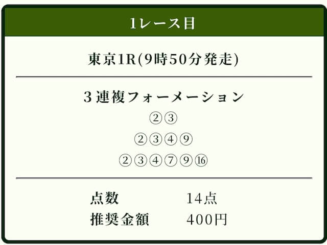 | 小倉競馬場 | 2/3 | 66.7% | 93,200円 | 34,600円 | 58,600円 | 269.4% |