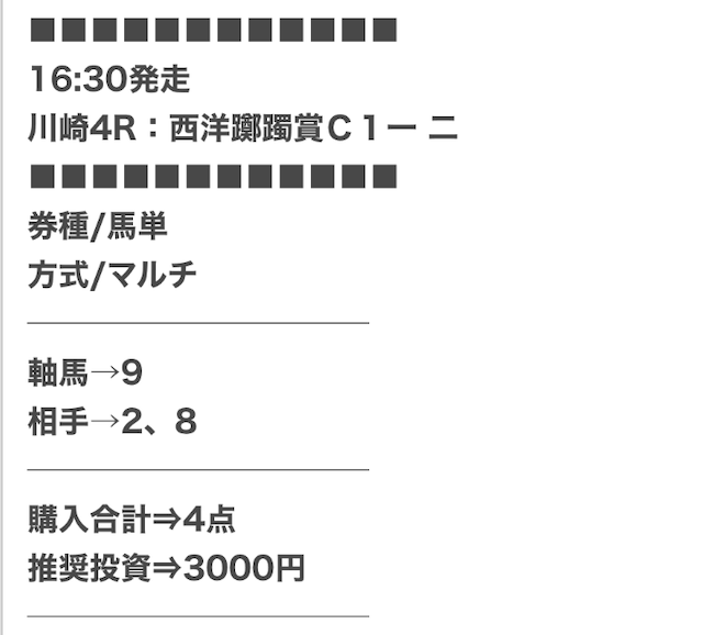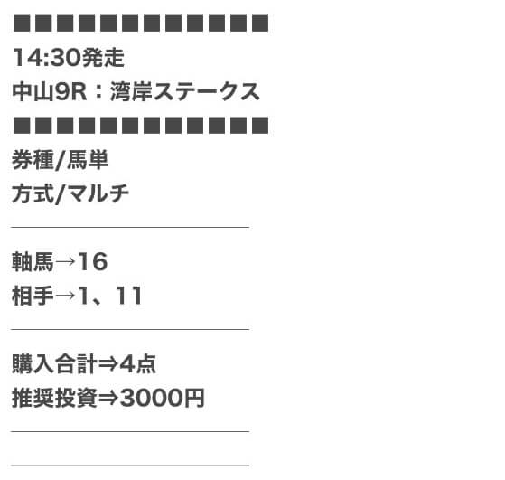 | 戦績 | 354戦288勝66敗 | 的中率 | 81.6% | 回収率 | 237.5% |