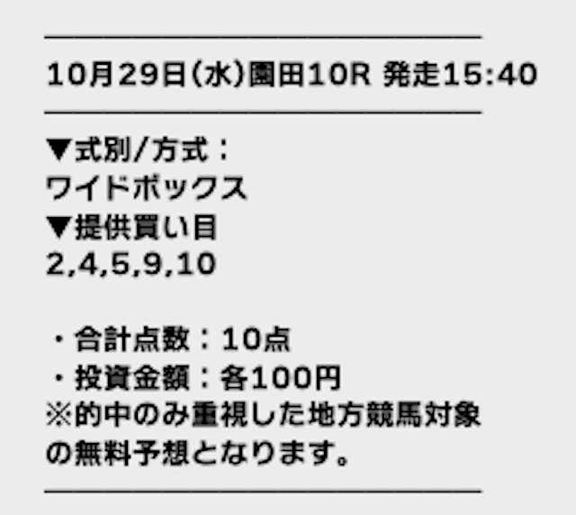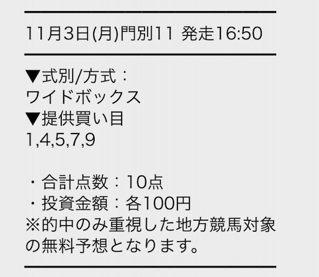 | 高知競馬場 | 2/2 | 100% | 40,000円 | 20,000円 | 20,000円 | 200% |