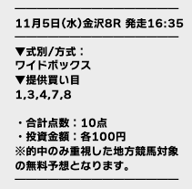 | 金沢競馬場 | 8/11 | 72.7% | 161,200円 | 110,000円 | 51,200円 | 146.5% |