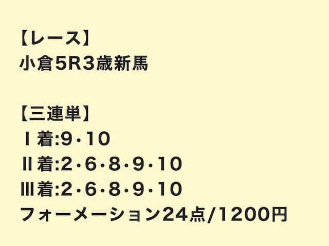 | 新馬戦 | 0/0 | - | - | - | - | - |