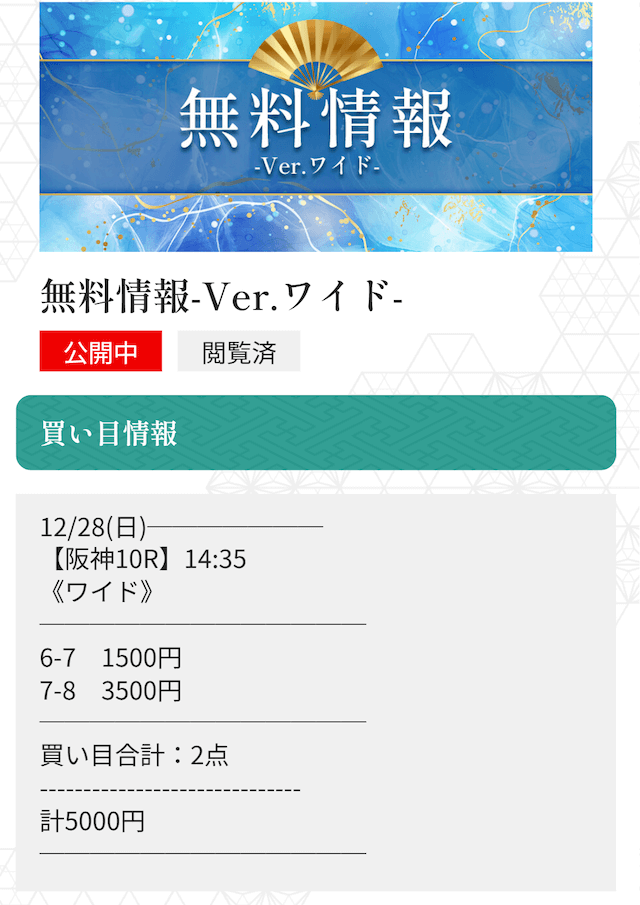 - 的中 12月28日 阪神10R