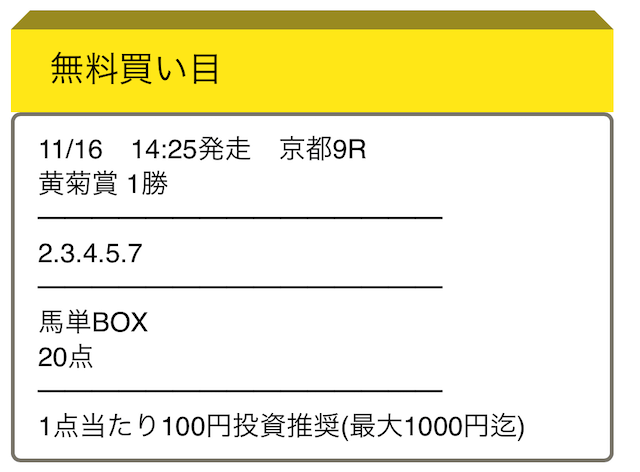 | 戦績 | 128戦96勝32敗 | 的中率 | 75.8% | 回収率 | 290.8% |