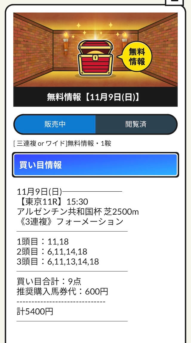 | 戦績 | 82戦53勝29敗 | 的中率 | 64.6% | 回収率 | 503.8% |