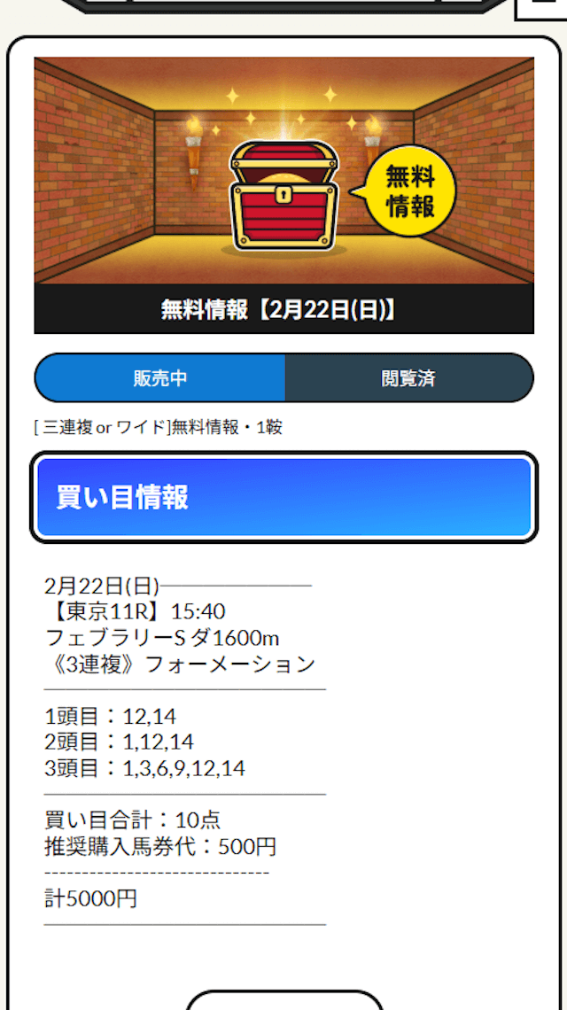 - 的中 2月22日 東京11R