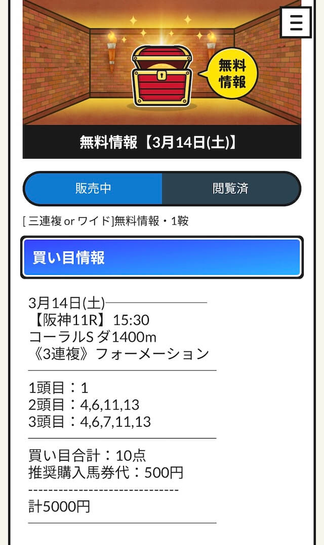 - 的中 3月14日 阪神11R