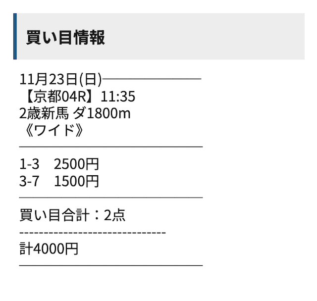 | 京都競馬場 | 6/7 | 85.7% | 121,730円 | 28,000円 | 93,730円 | 434.8% |