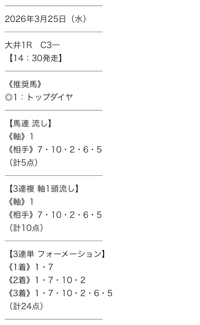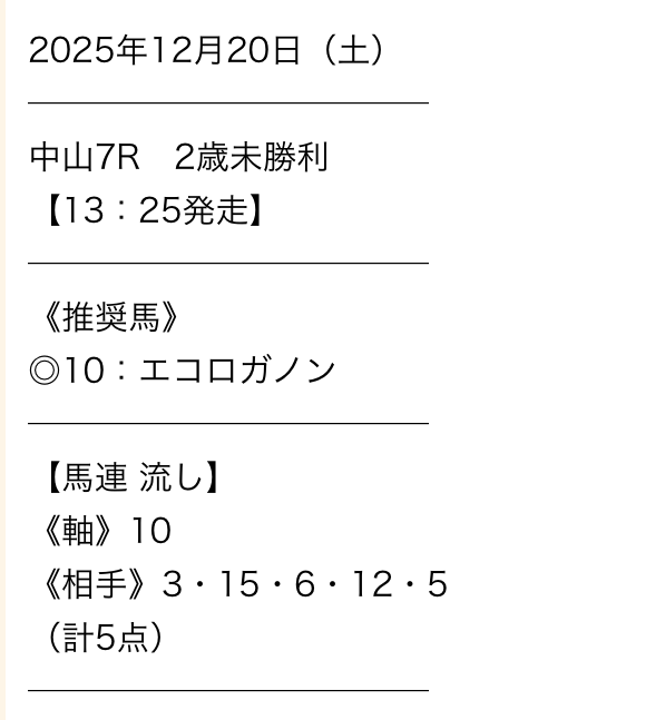 | 2025年 | 勝敗 | 的中率 | 払戻金額 | 投資金額 | 利益 | 回収率 |