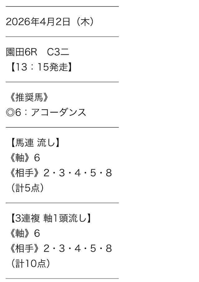| 2026年 | 勝敗 | 的中率 | 払戻金額 | 投資金額 | 利益 | 回収率 |