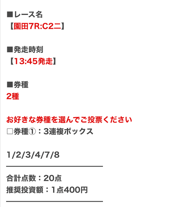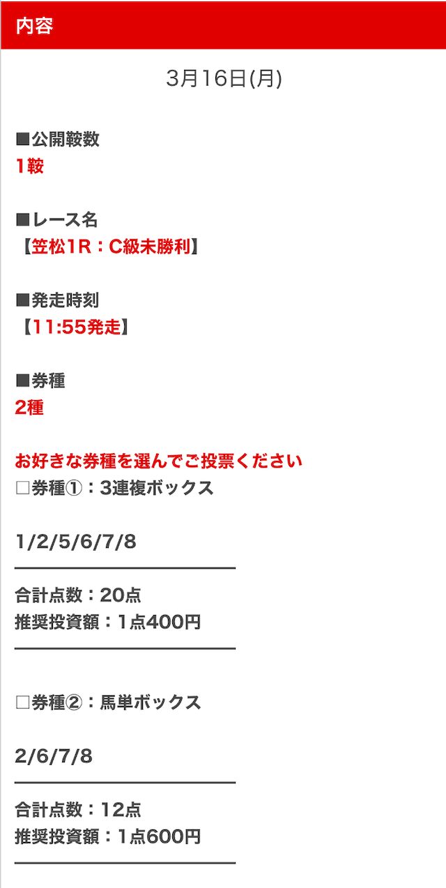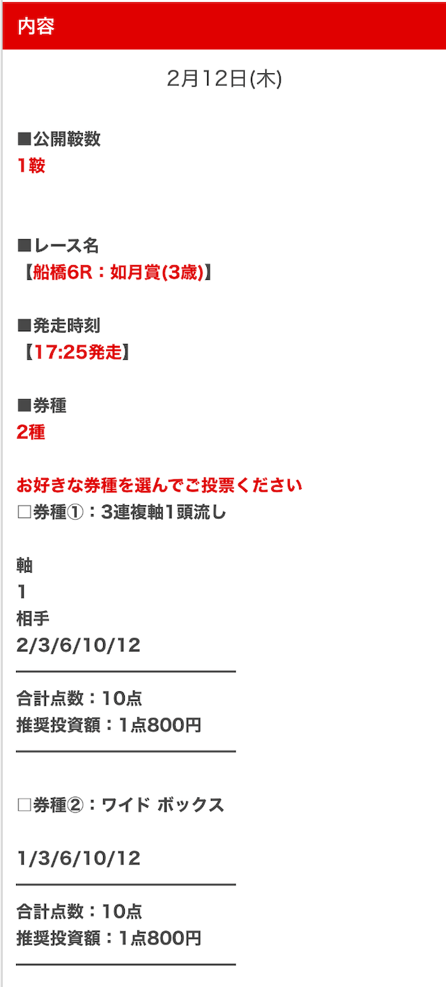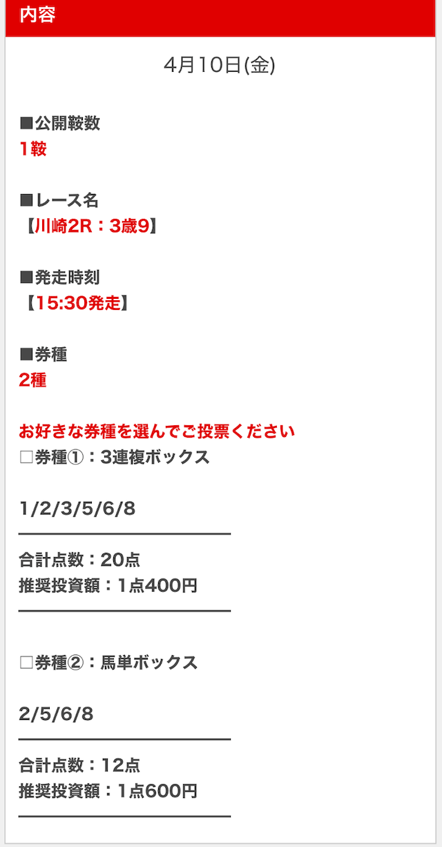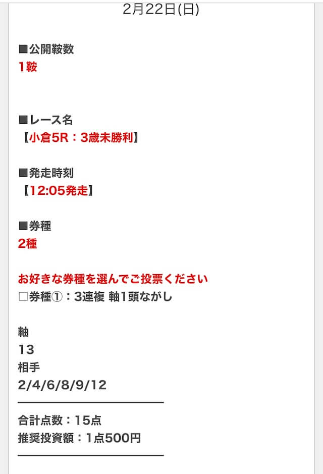 - 決まった券種の予想が見れるとは限らない