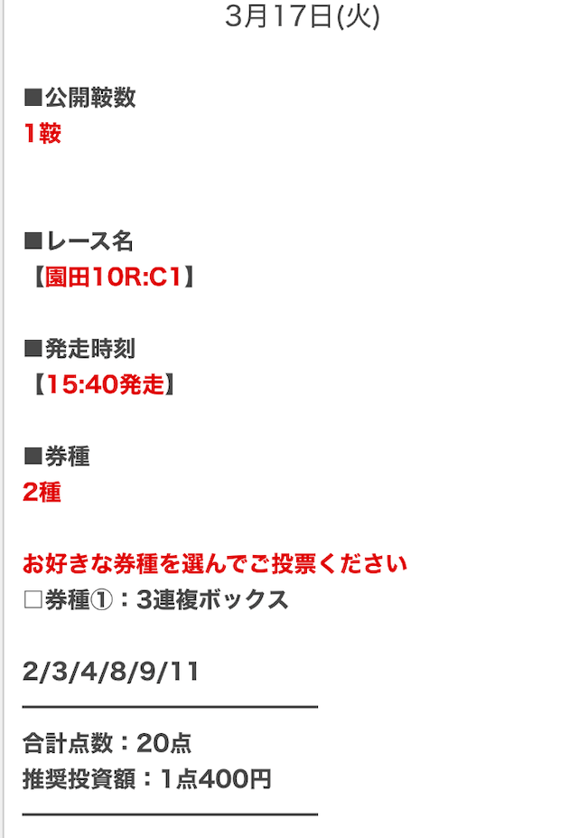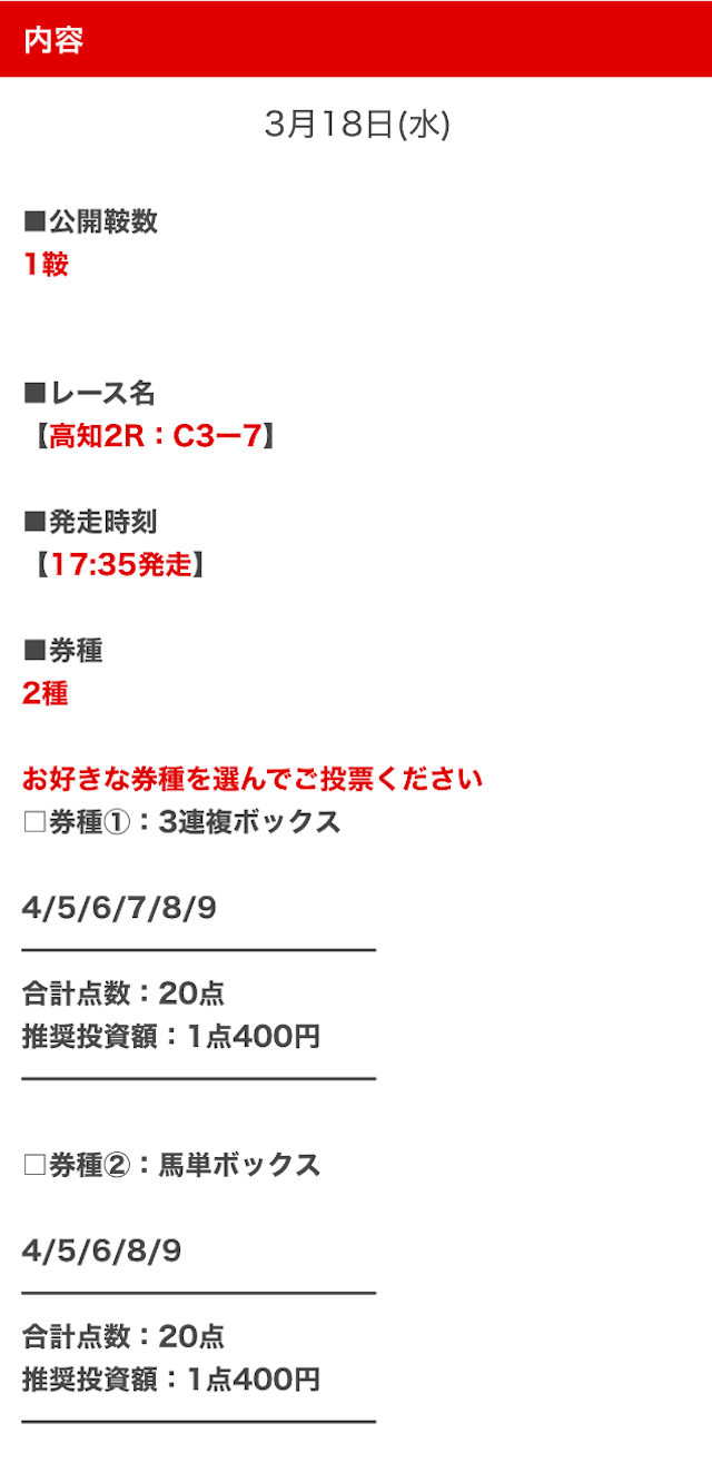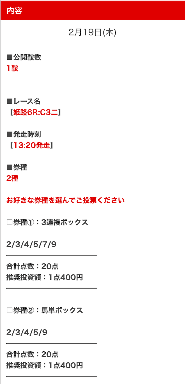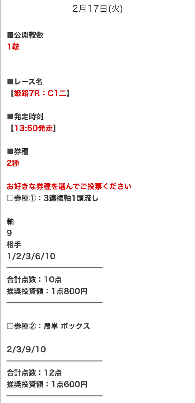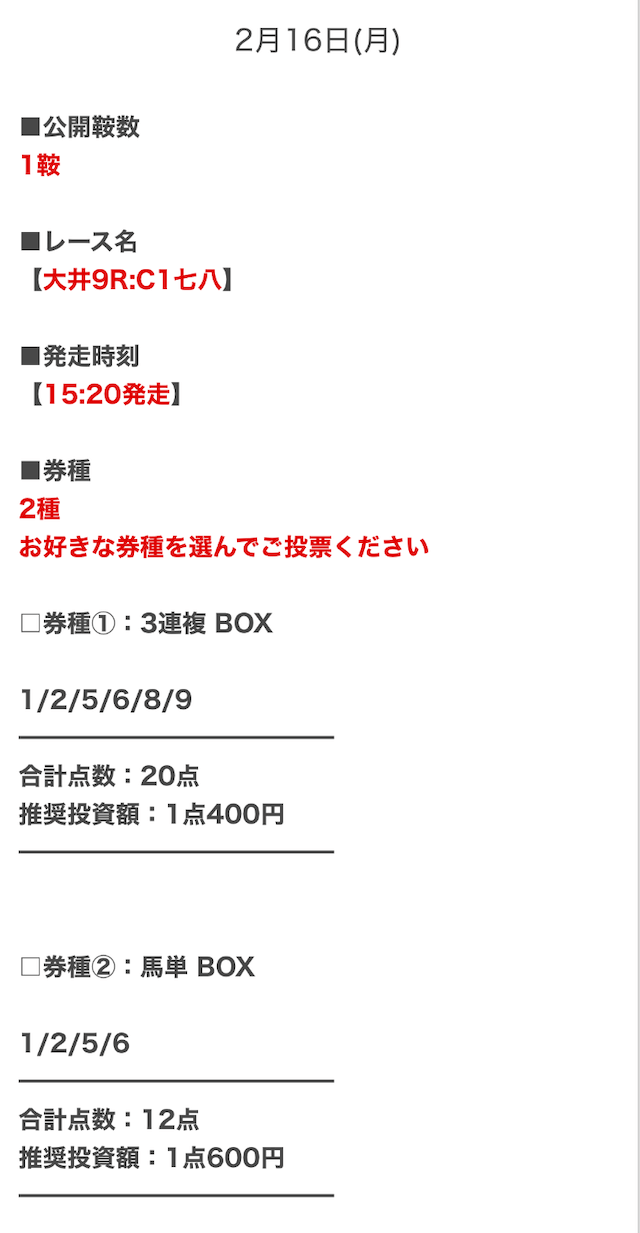 - 決まった券種の予想が見れるとは限らない