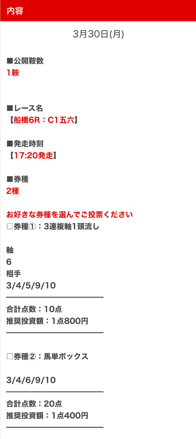 - 的中 3月30日 船橋6R