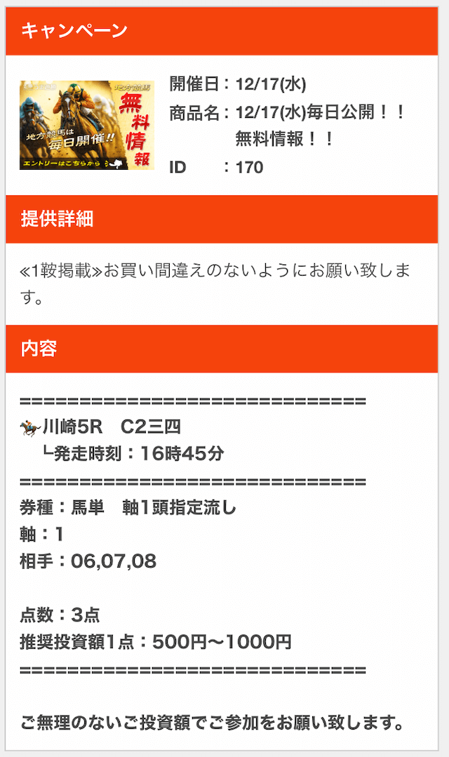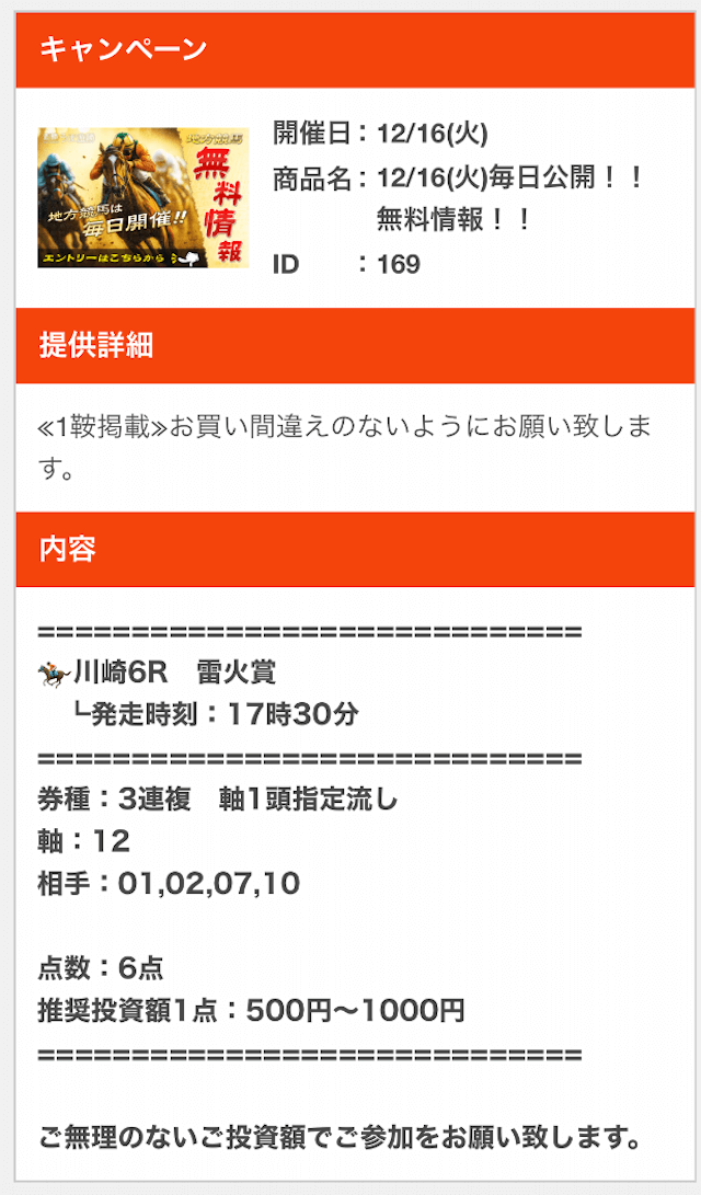 - 的中 12月16日 川崎6R