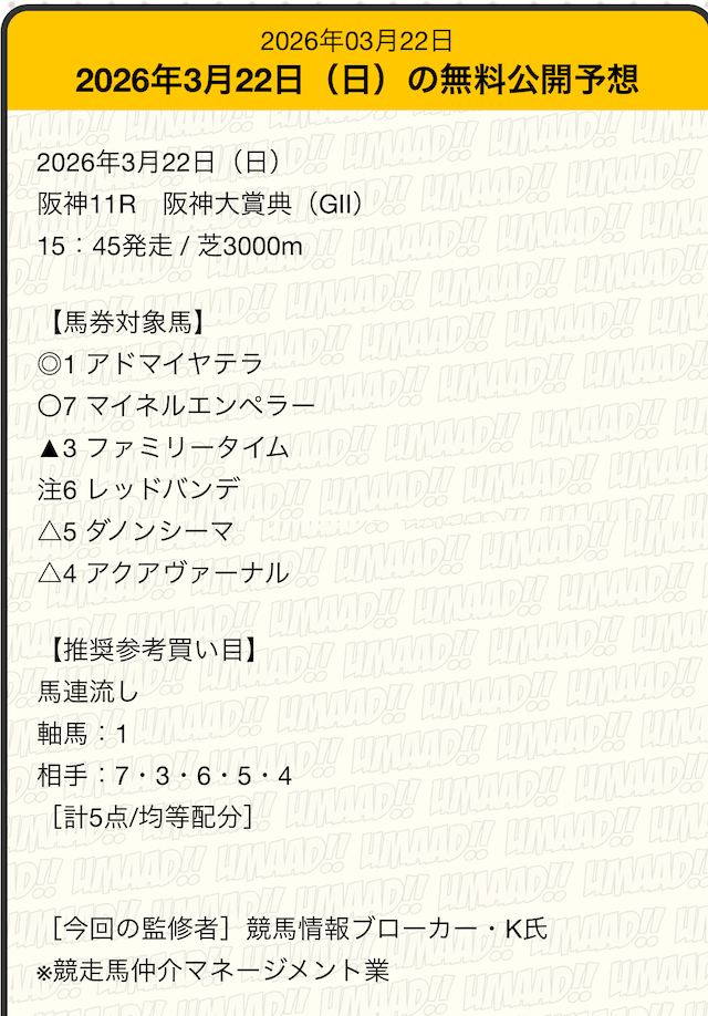 - 的中 3月22日 阪神11R