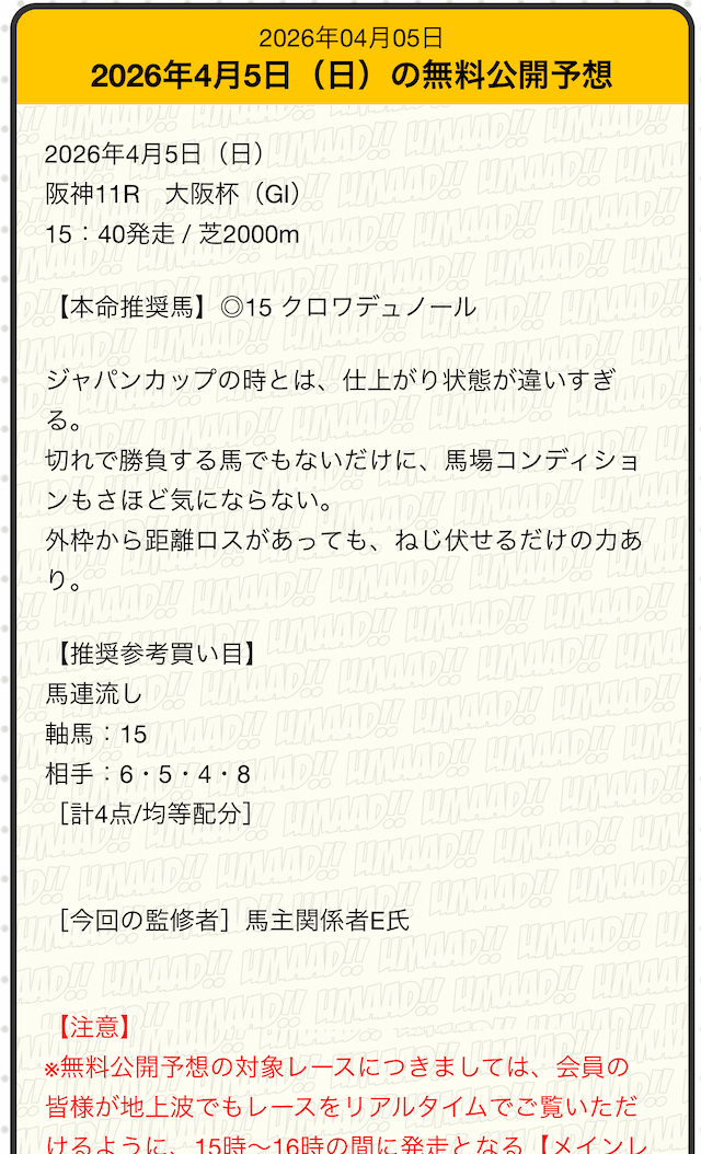 - 的中 4月6日 阪神11R